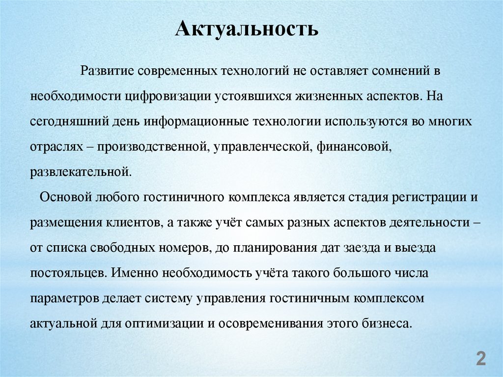 АктуальностьРазвитие современных технологий не оставляет сомнений в