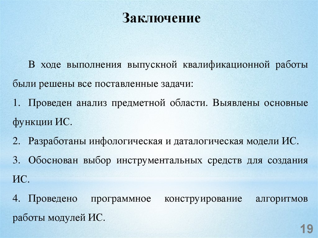 ЗаключениеВ ходе выполнения выпускной квалификационной работы