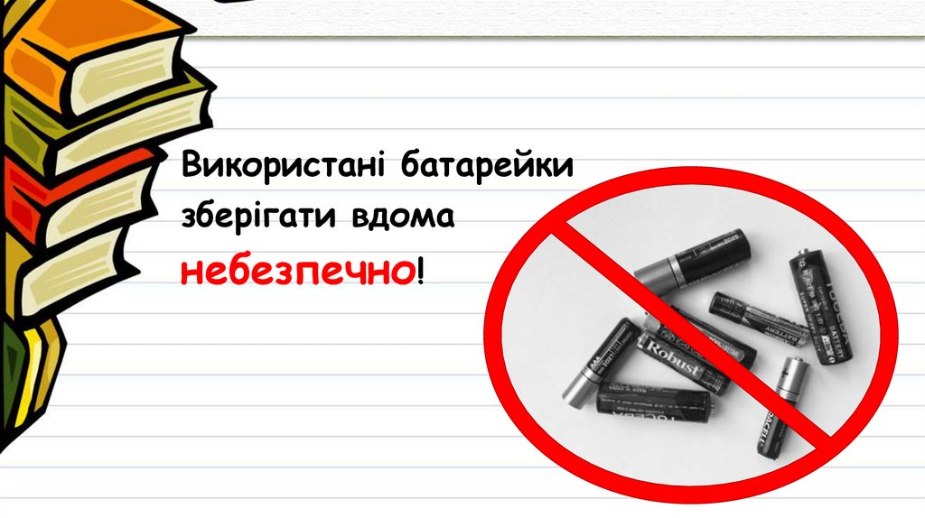 ◦ В Україні немає підприємства для перероблення батарейок: за утилізаціюпотрібно доплачувати, а кількість батарейок, які збирають у країні, недостатня