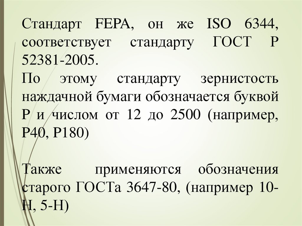 Стандарт FEPA, он же ISO 6344,соответствует стандарту ГОСТ Р