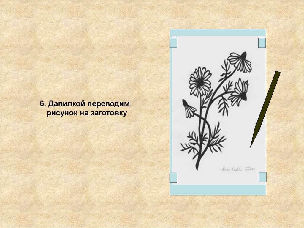 6. Давилкой переводимрисунок на заготовку