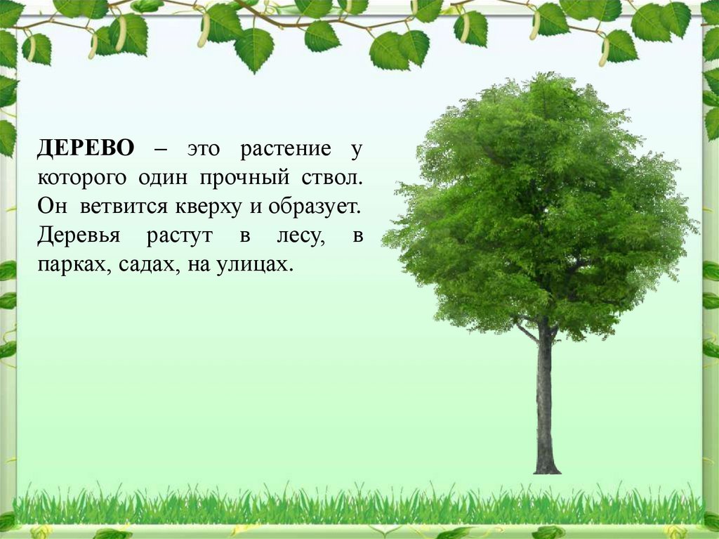 ДЕРЕВО – это растение укоторого один прочный ствол.