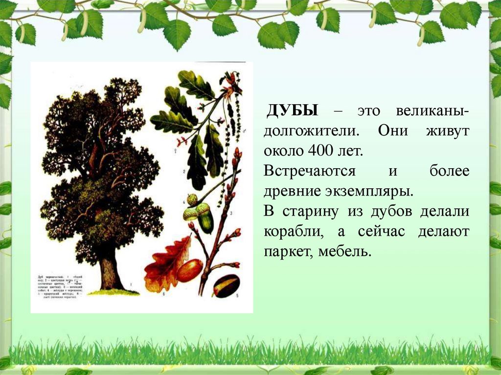 ДУБЫ – это великаныдолгожители. Они живутоколо 400 лет.