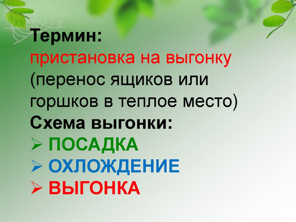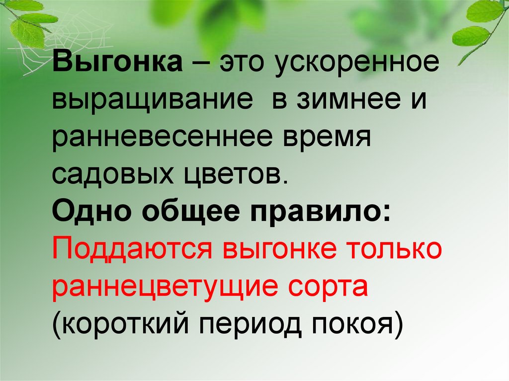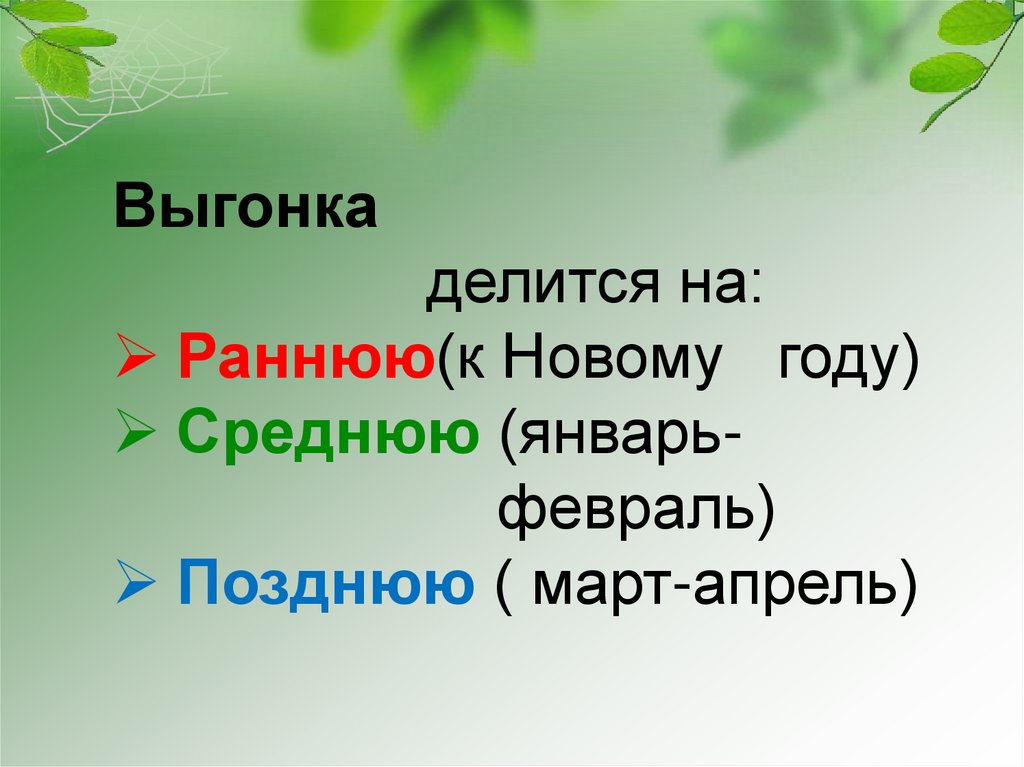 Выгонка – это ускоренноевыращивание в зимнее и