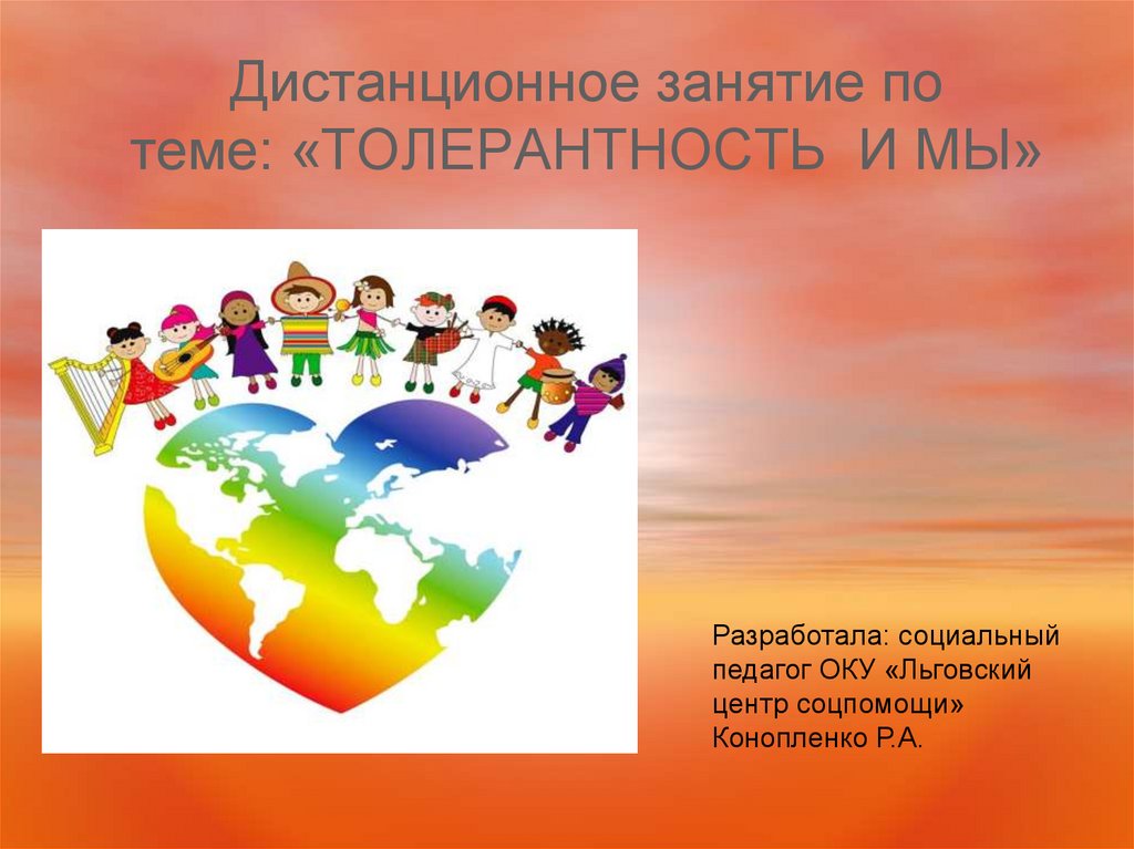 1. Дистанционное занятие по теме: «ТОЛЕРАНТНОСТЬ И МЫ»