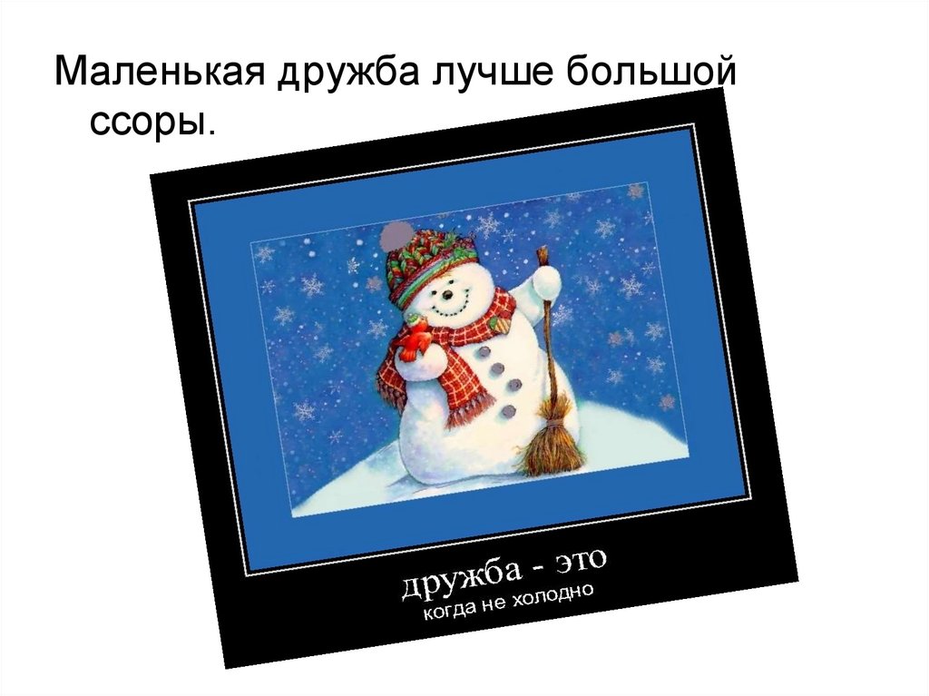 Маленькая дружба лучше большойссоры.