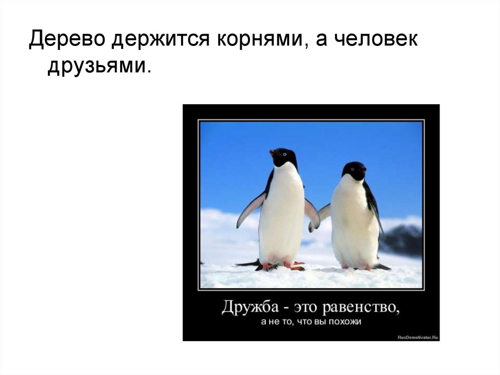 Дерево держится корнями, а человекдрузьями.