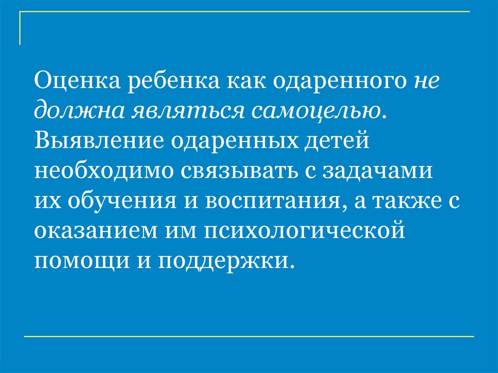 Оценка ребенка как одаренного недолжна являться самоцелью.