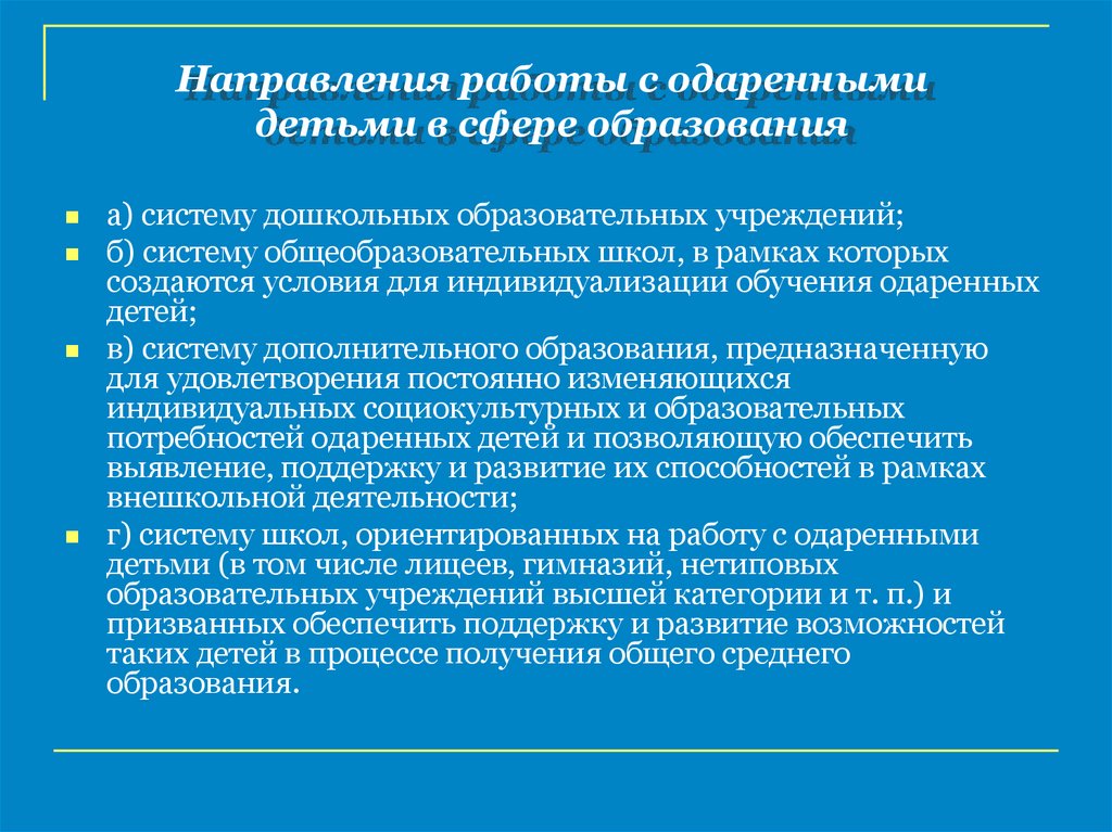 Направления работы с одареннымидетьми в сфере образования
