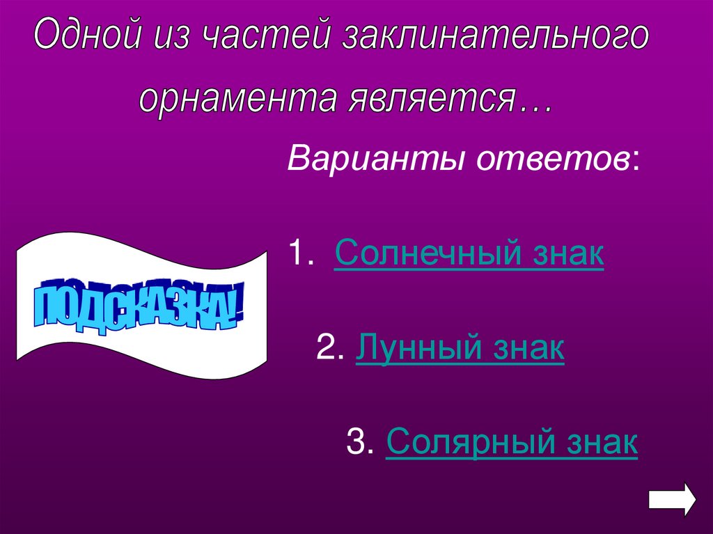 Варианты ответов:1. Солнечный знак