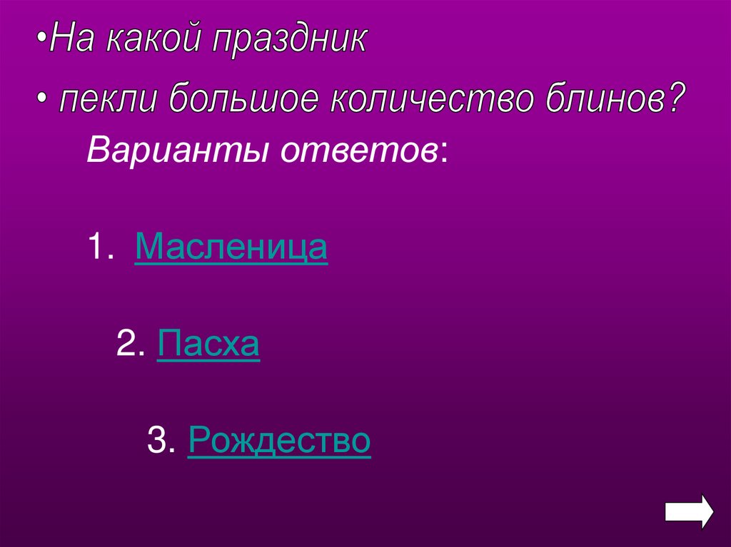 Варианты ответов:1. Масленица