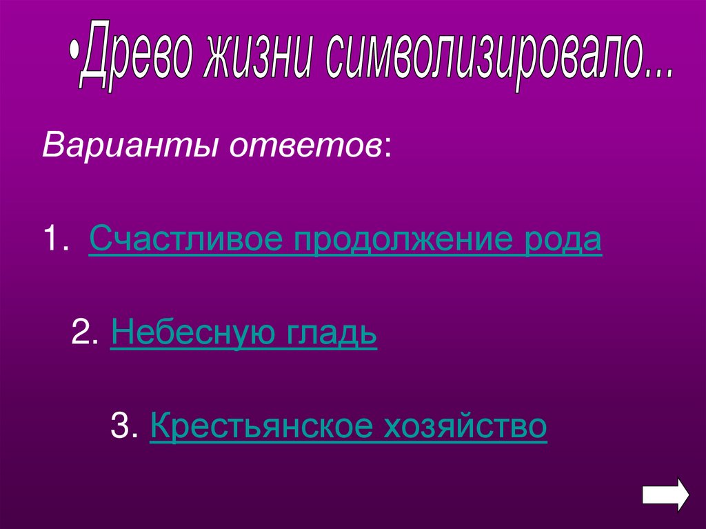 Варианты ответов:1. Счастливое продолжение рода