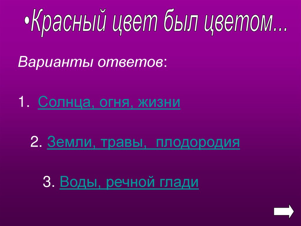 Варианты ответов:1. Солнца, огня, жизни