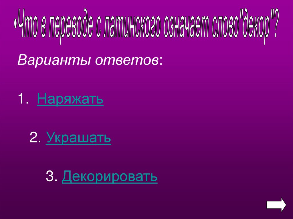 Варианты ответов:1. Наряжать