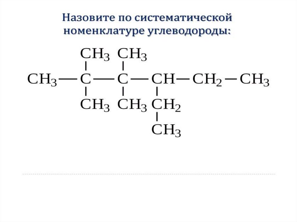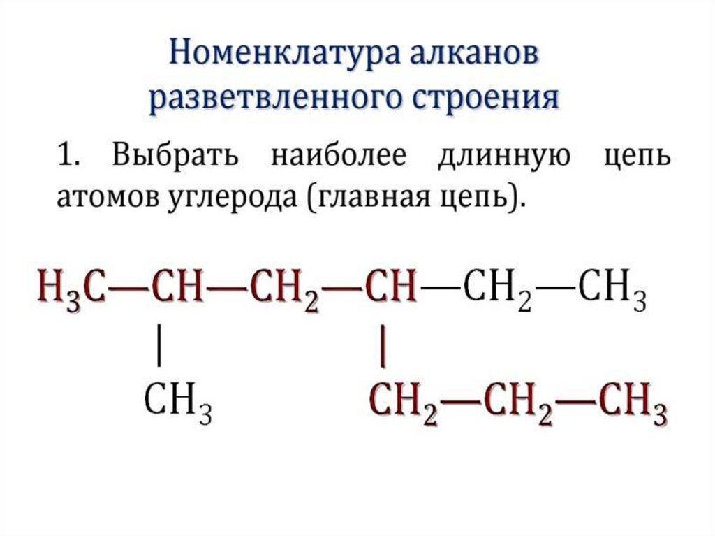 • Выбрать самую длинную цепь атомов углерода;• Пронумеровать ее с той стороны, к которой ближе