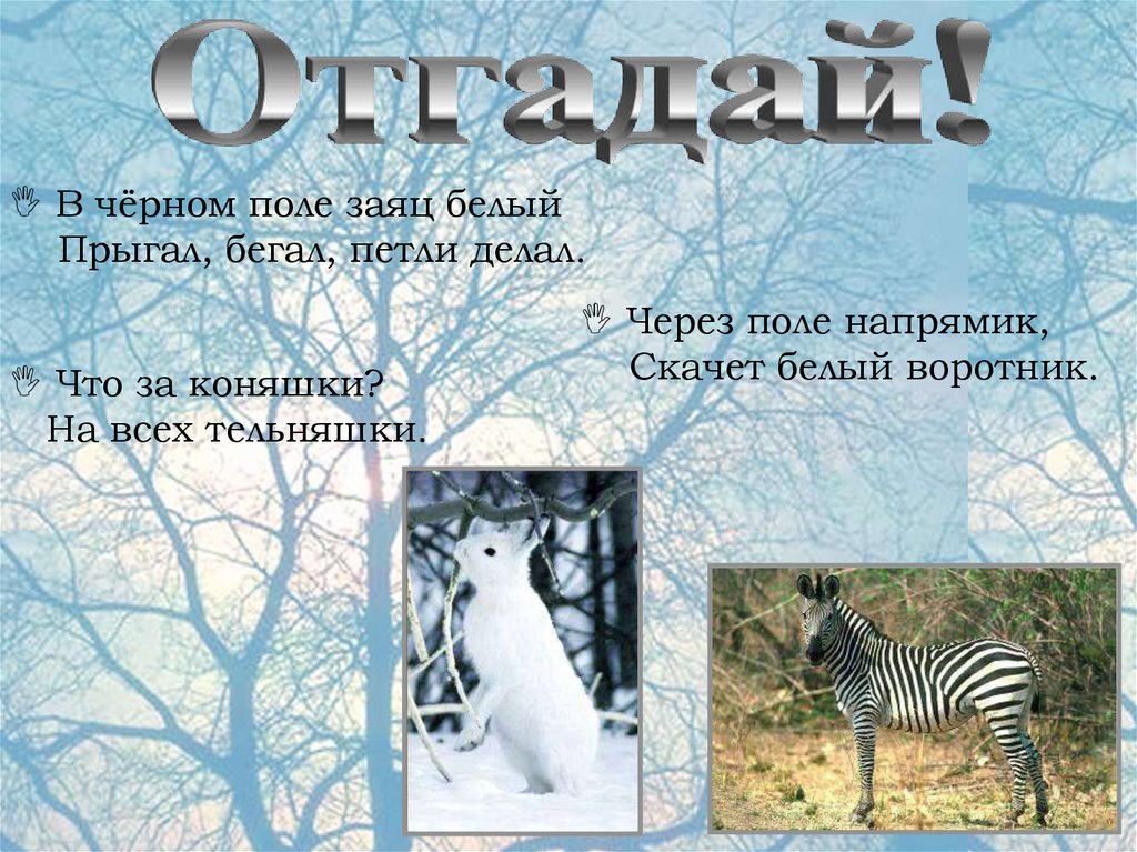 В чёрном поле заяц белыйПрыгал, бегал, петли делал.