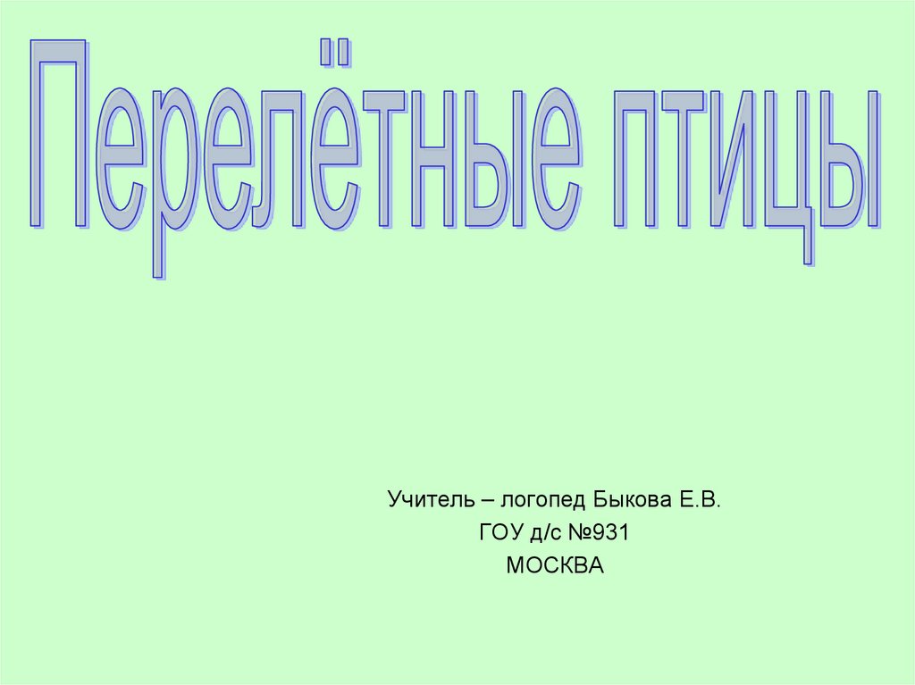 Учитель – логопед Быкова Е.В.ГОУ д/с №931