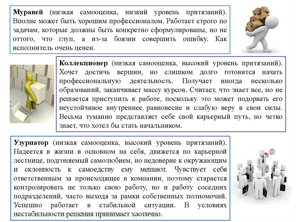 Коллекционер (низкая самооценка, высокий уровень притязаний).