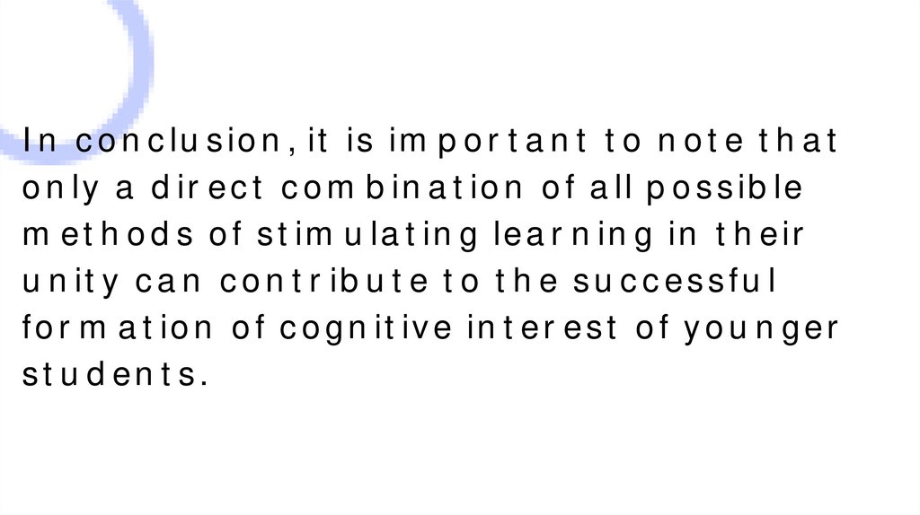 The formation of cognitive interest in youngerstudents is the most important condition for the