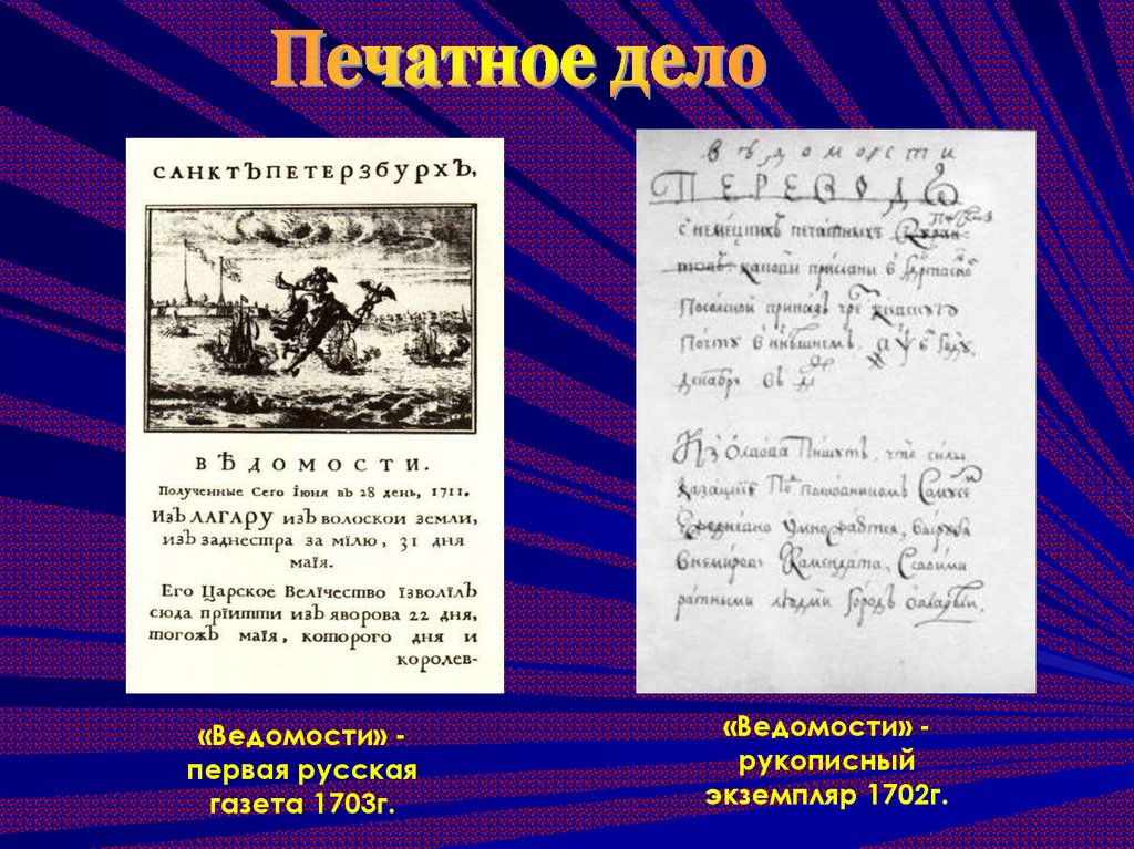 «Ведомости» первая русскаягазета 1703г.