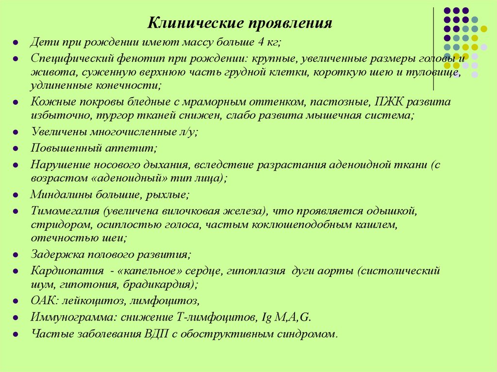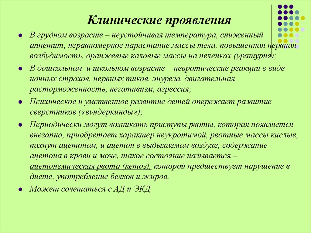 Клинические проявленияВ грудном возрасте – неустойчивая температура, сниженный