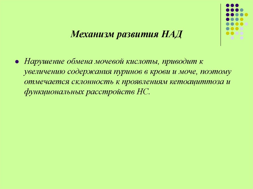 Механизм развития НАДНарушение обмена мочевой кислоты, приводит к