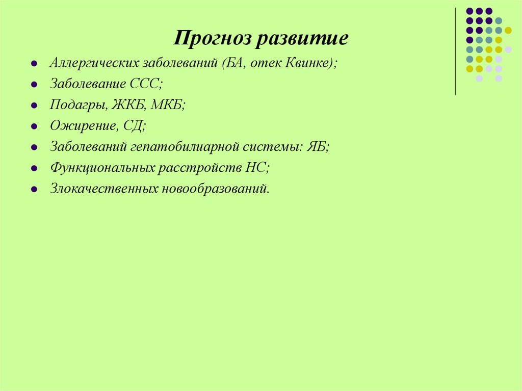Прогноз развитиеАллергических заболеваний (БА, отек Квинке);