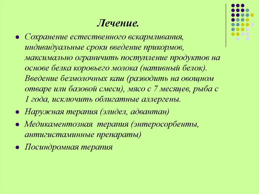 ЛечениеДиетотерапия ограничение легкоусвояемых углеводов (каш, сахара,