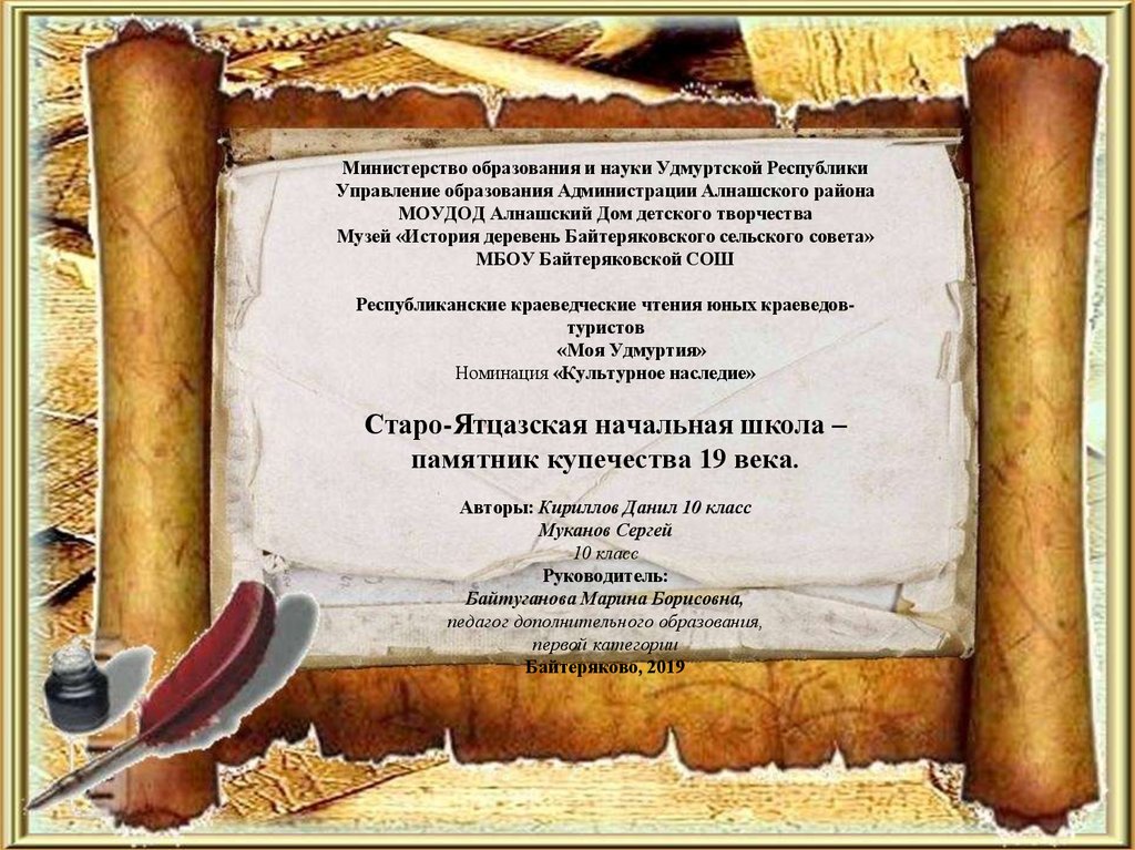 1. Министерство образования и науки Удмуртской Республики Управление образования Администрации Алнашского района МОУДОД Алнашский