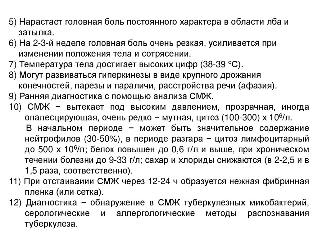 4)СМЖ – в начале имеет серозный характер с лимфоцитарным