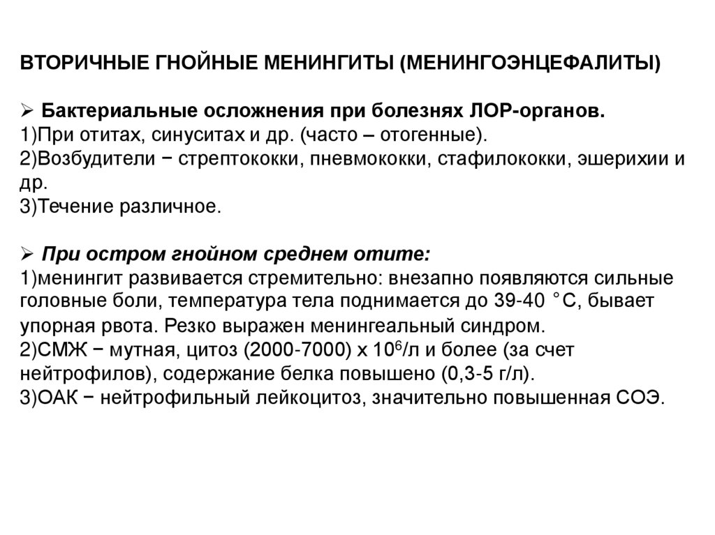 ВТОРИЧНЫЕ ГНОЙНЫЕ МЕНИНГИТЫ (МЕНИНГОЭНЦЕФАЛИТЫ)Бактериальные осложнения при болезнях ЛОР-органов.
