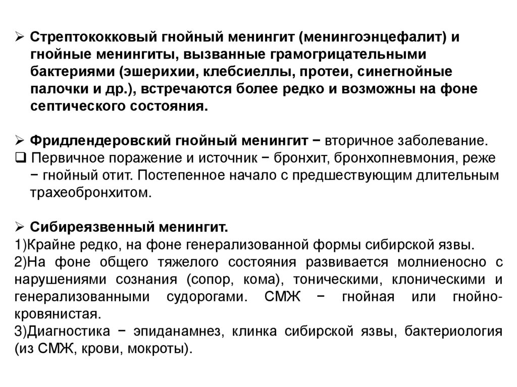 Стрептококковый гнойный менингит (менингоэнцефалит) игнойные менингиты, вызванные грамогрицательными