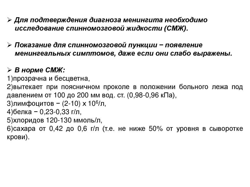 Для подтверждения диагноза менингита необходимоисследование спинномозговой жидкости (СМЖ).