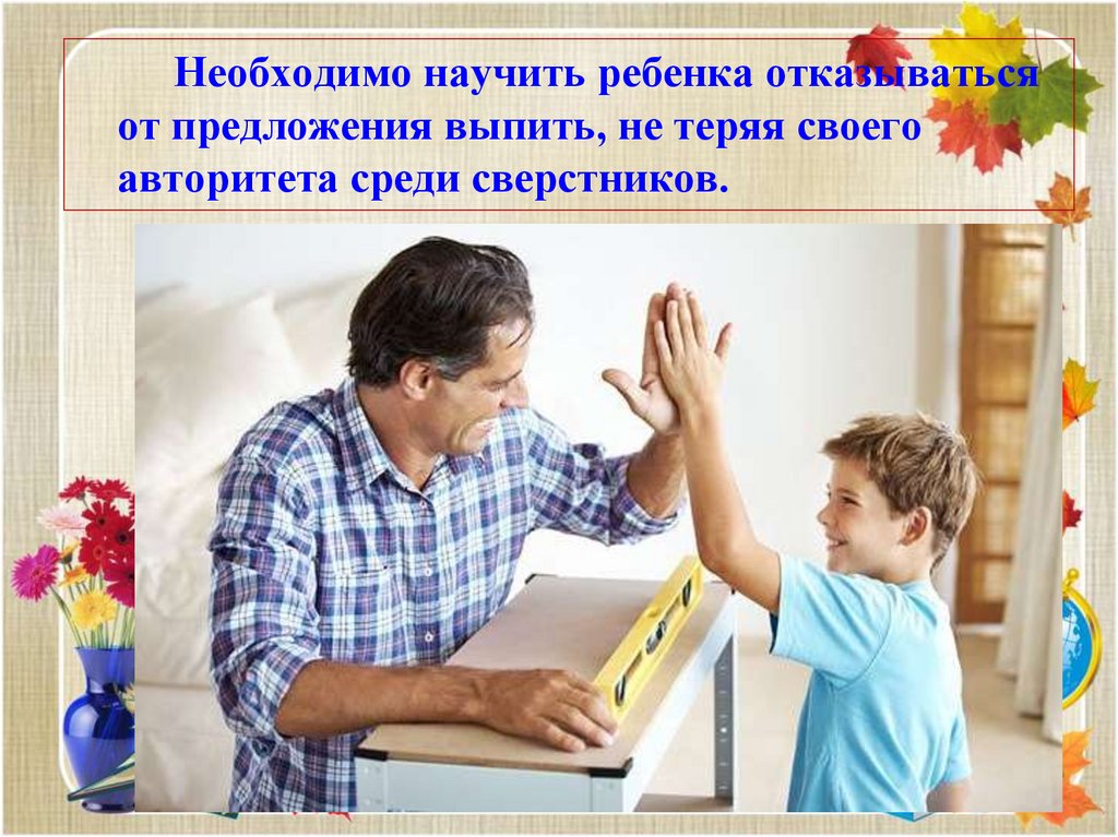 Необходимо научить ребенка отказыватьсяот предложения выпить, не теряя своего
