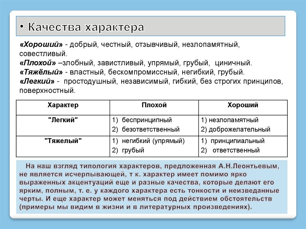 «Легкий» - простодушный, независимый, гибкий, без строгих принципов,