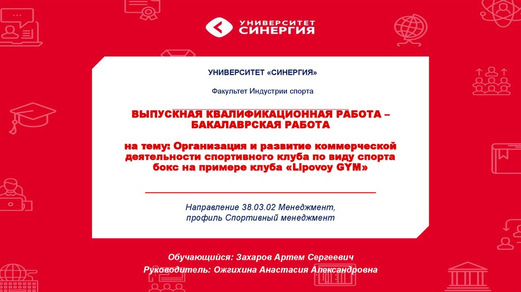 УНИВЕРСИТЕТ «СИНЕРГИЯ»Факультет Индустрии спорта