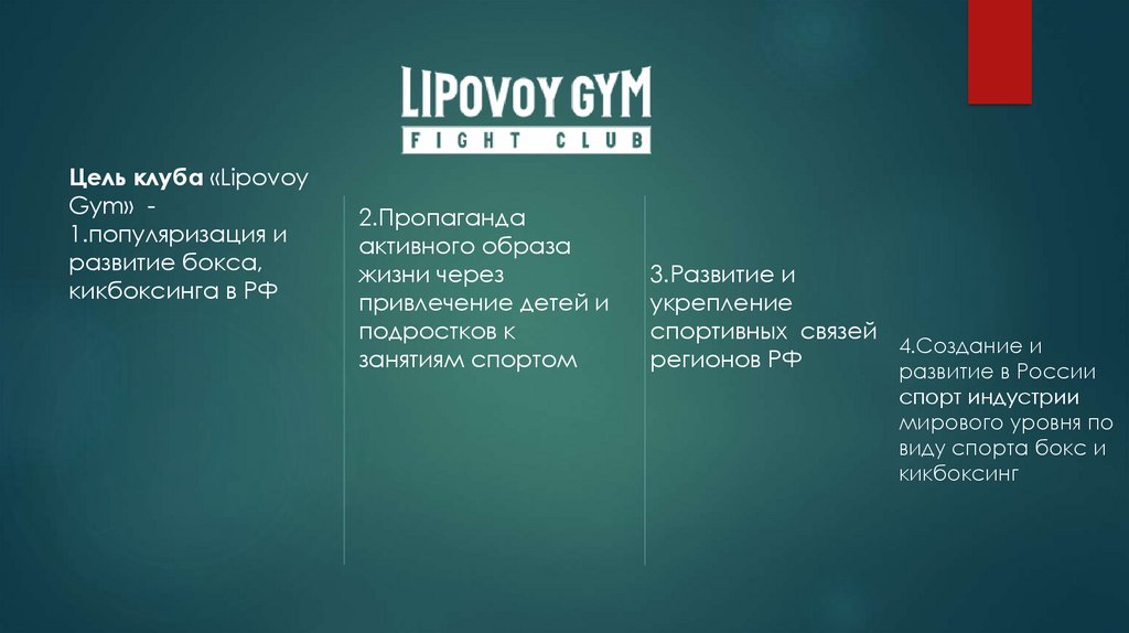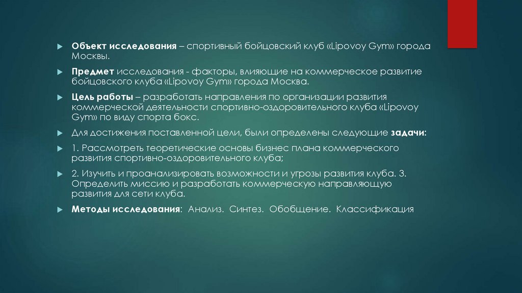Объект исследования – спортивный бойцовский клуб «Lipovoy Gym» городаМосквы.