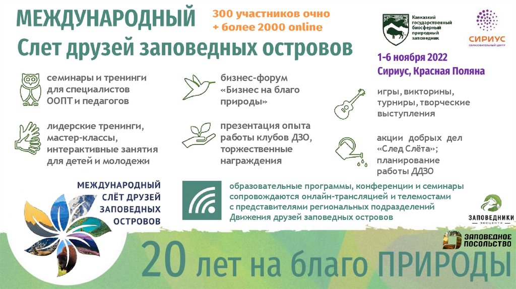 инициировано и с 2001 года развивается Движение«Друзья Заповедных островов» http://www.wildnet.ru/friendszap/