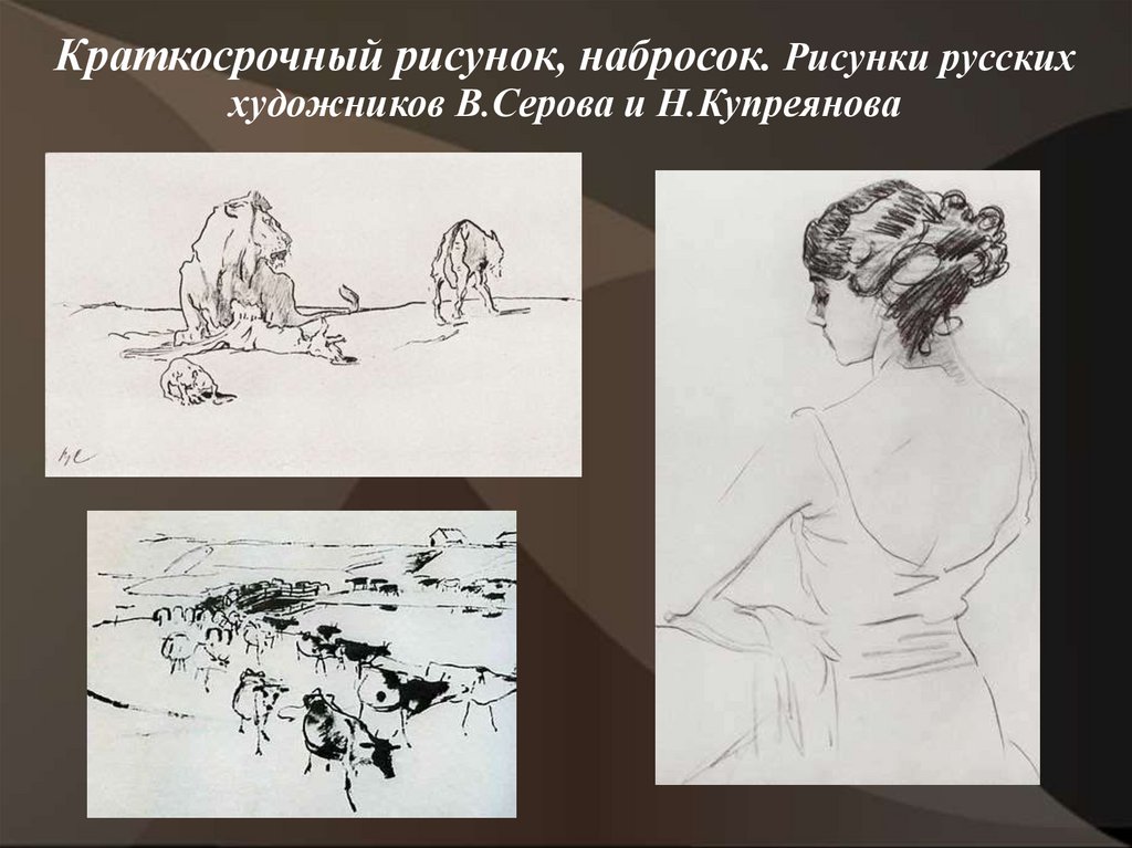 Краткосрочный рисунок, набросок. Рисунки русскиххудожников В.Серова и Н.Купреянова