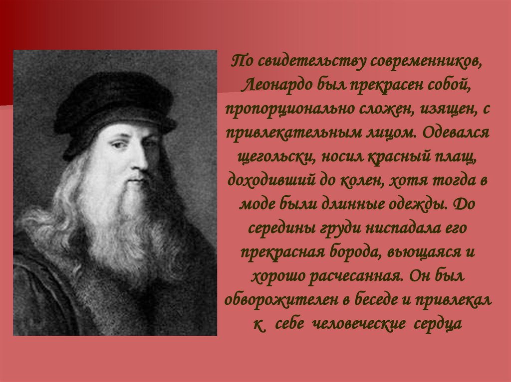 По свидетельству современников,Леонардо был прекрасен собой,