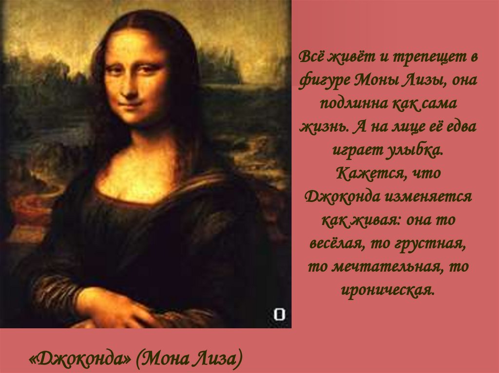 Всё живёт и трепещет вфигуре Моны Лизы, она
