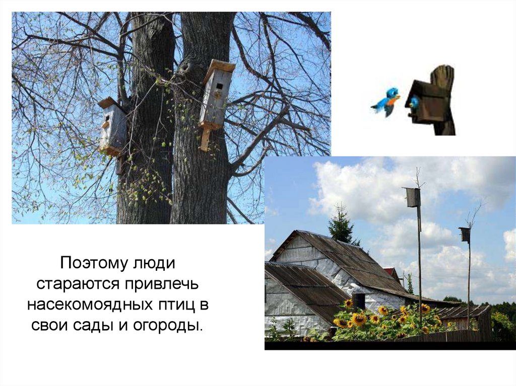 Очень полезны насекомоядные птицы. Они уничтожаютвредных насекомых и тем самым спасают зеленые
