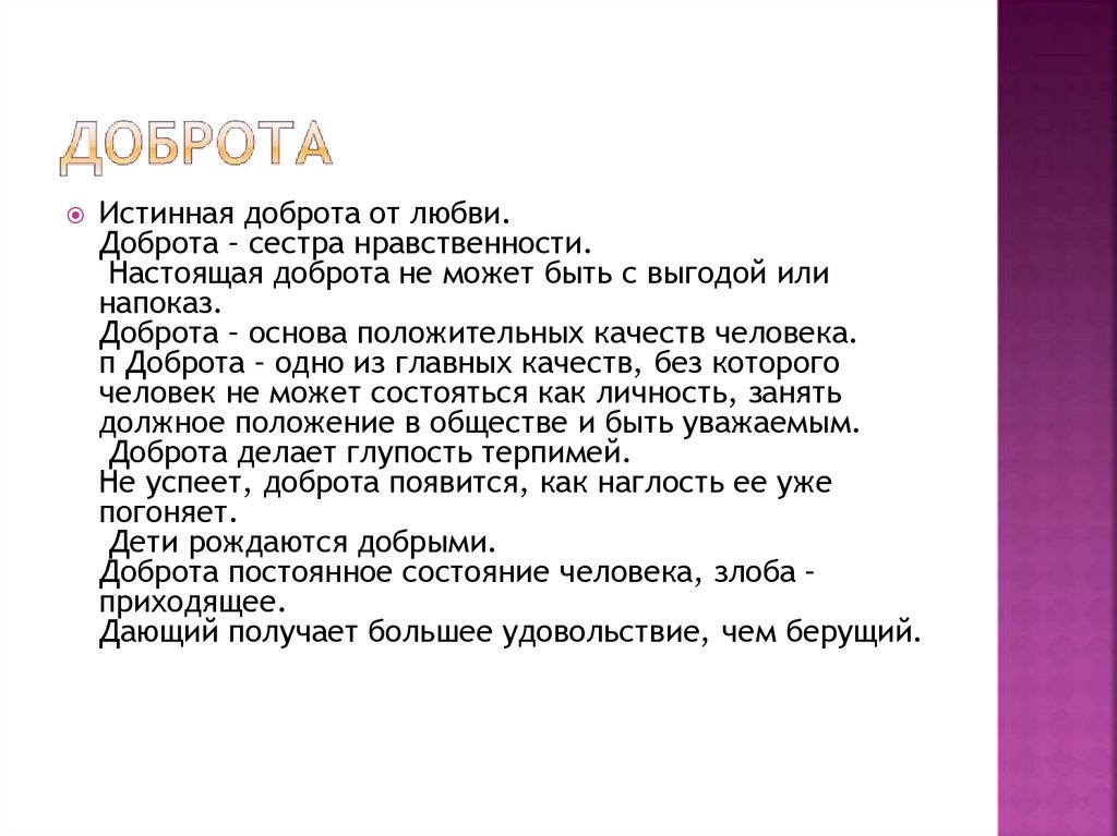 Истинная доброта от любви.Доброта – сестра нравственности.