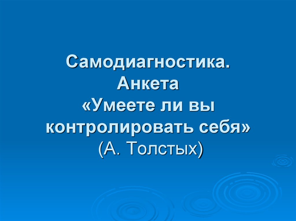 Самодиагностика. Анкета «Умеете ли вы контролировать себя» (А. Толстых)