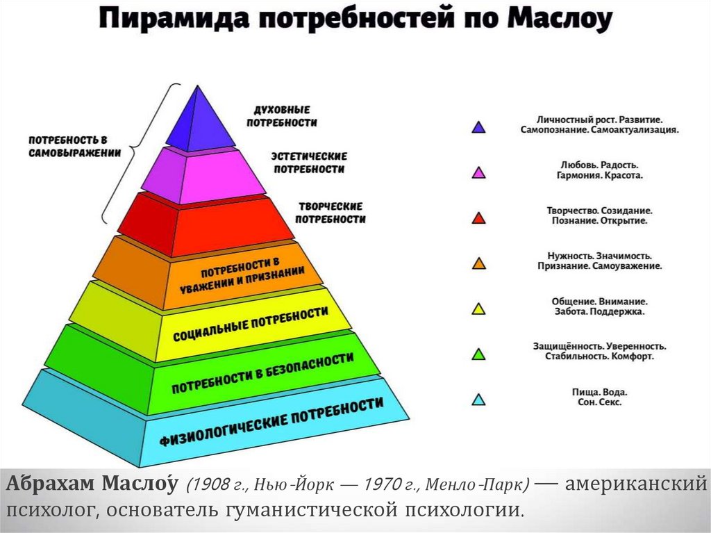 А́брахам Масло́у (1908 г., Нью-Йорк — 1970 г., Менло-Парк) — американскийпсихолог, основатель гуманистической психологии.
