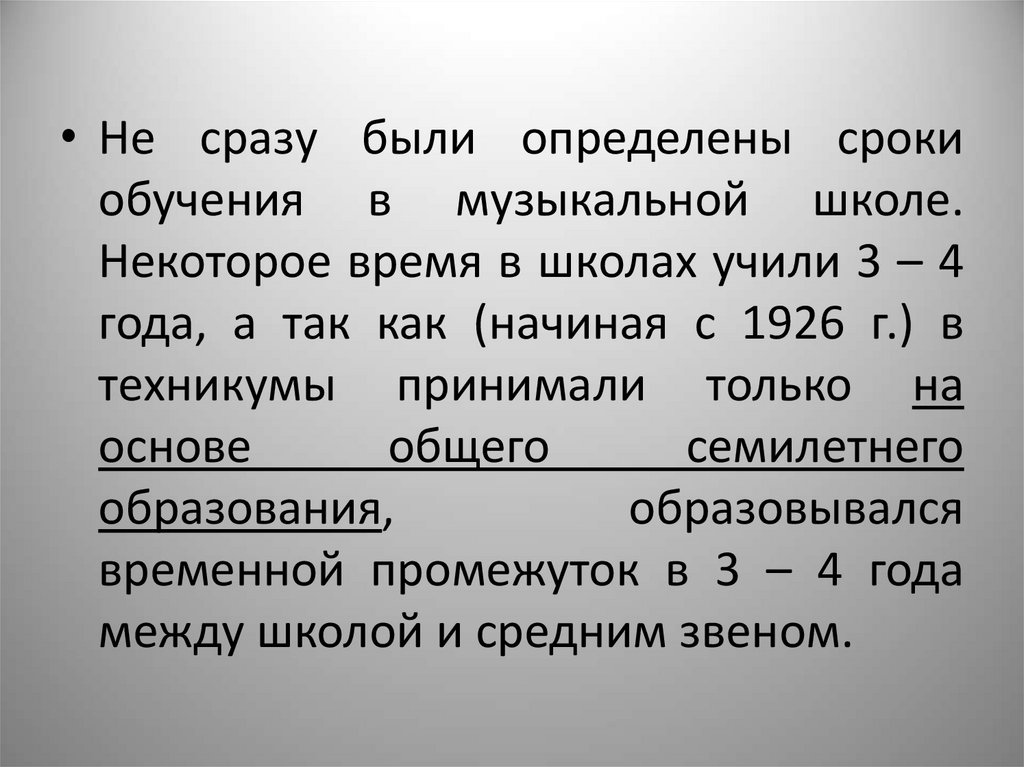 • Не сразу были определены срокиобучения в музыкальной школе.