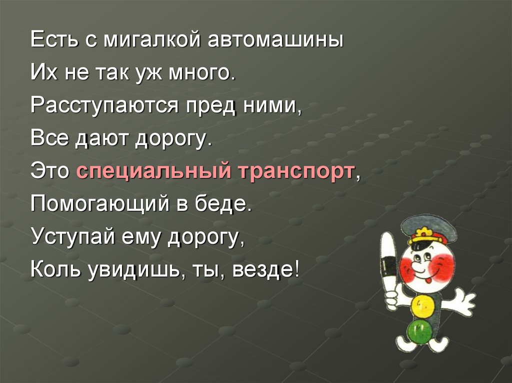 Есть с мигалкой автомашиныИх не так уж много.