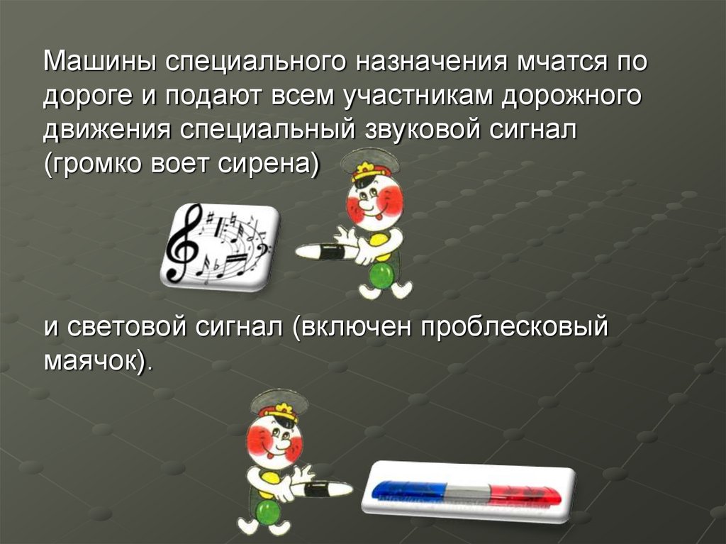 Машины специального назначения мчатся подороге и подают всем участникам дорожного