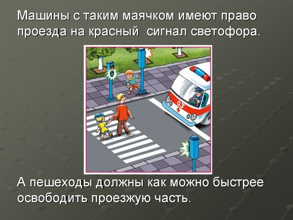 Машины с таким маячком имеют правопроезда на красный сигнал светофора.