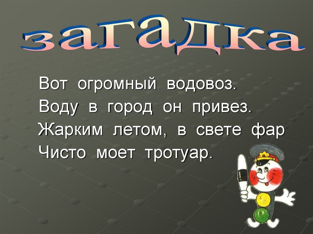 Вот огромный водовоз.Воду в город он привез.